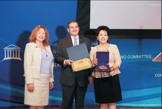 美国巴拿马太平洋万国博览会组委会主席Bruce Bommarito致欢迎词,他指出,自2015年以来中国区组委会配合巴拿马太平洋万国博览会组委会成功举办了五届颁奖典礼,这个超过百年的盛会将对世界文化的融合和经济交流产生深远的影响,且意义重大。