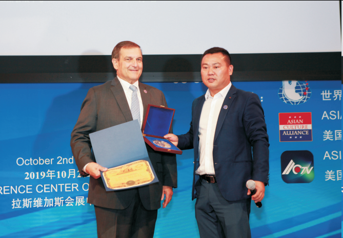 2019年10月2日晚,由美国巴拿马太平洋 万国博览会组委会主办,世界华人企业家协 会、美国华亚协会、美国华亚电视台等单位协 的“2019第104届美国巴拿马太平洋万国博览 会颁奖盛典”在拉斯维加斯会展中心隆重举 行。美国巴拿马太平洋万国博览会组委会主席 布鲁斯‧波马利特(Bruce Bommarito)、美 国巴拿马太平洋万国博览会组委会评委、克拉 克郡长Lynn Goya,以及美国国会众议员Dina Titus、Steven Horsford、Susie Lee、美国巴 拿马太平洋万国博览会组委会评委、内华达州 议员Scott Hammond、克拉克郡秘书长Debbie Conway出席颁奖盛典并为获奖企业代表颁发奖牌和证书。 美国国会众议员Susie Lee及克拉克郡长分别向余顺标主席颁发嘉奖证书和贺状。本地各界侨社、工商企业 代表以及来自中国的企业家、获奖企业代表到场共襄盛举。