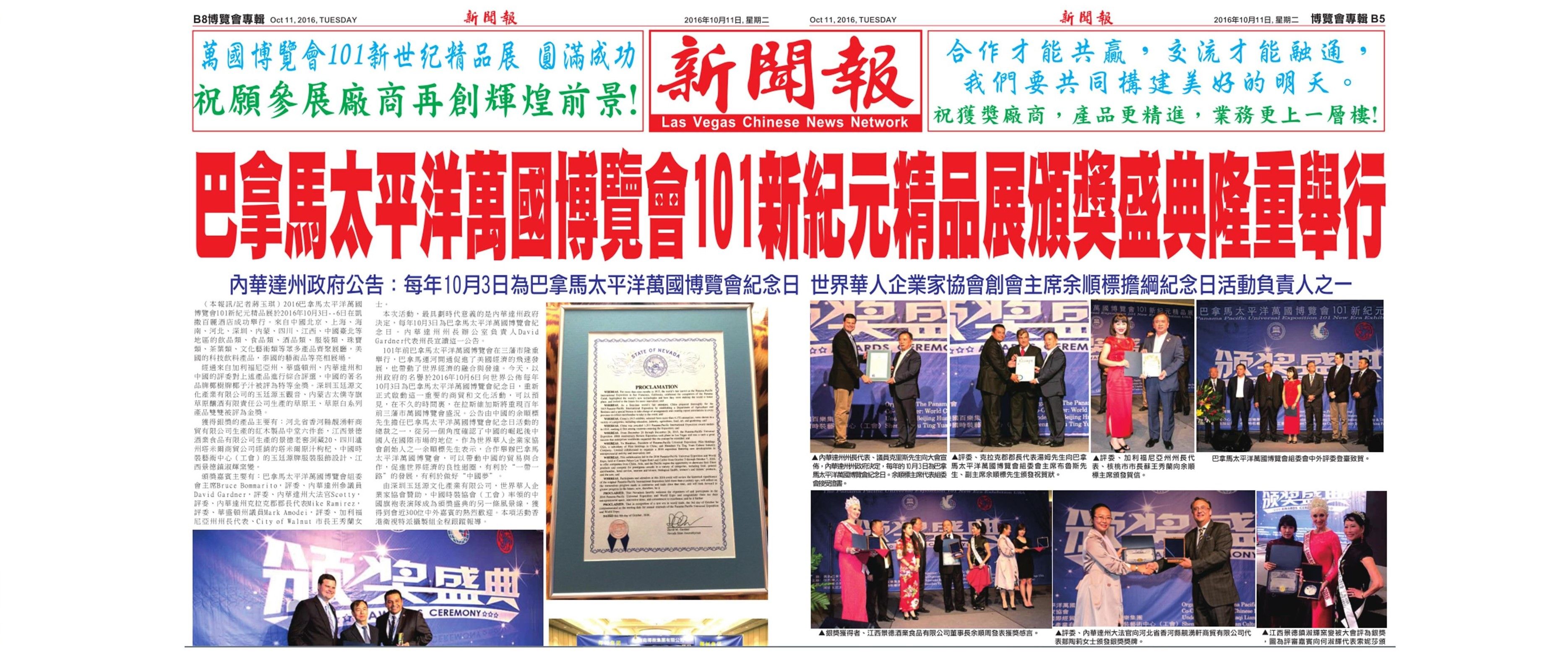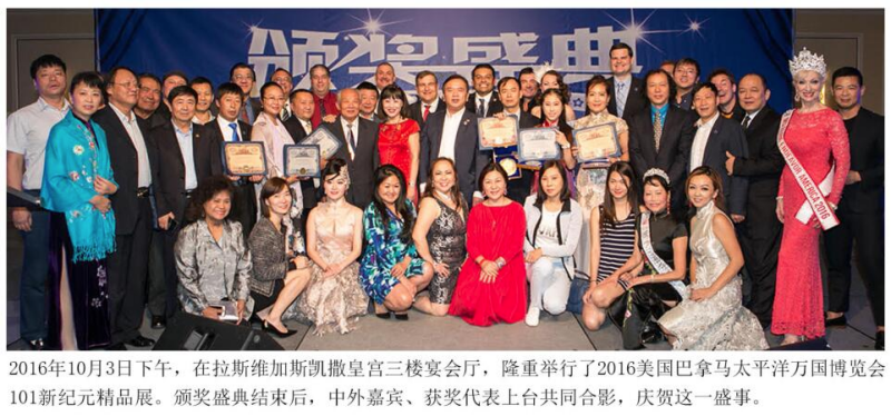 获奖时间:2016年12月23日,于2016年美国巴拿马万国博览会101精品展 颁奖地点:美国拉斯维加斯-凯撒百丽酒店