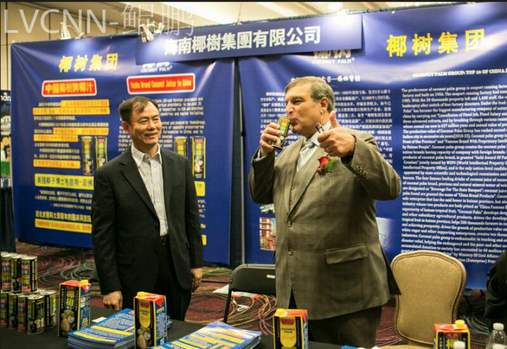 美国巴拿马万国博览会组委会评委会主席布噜斯先生品尝正宗椰树牌椰汁,称赞好喝!