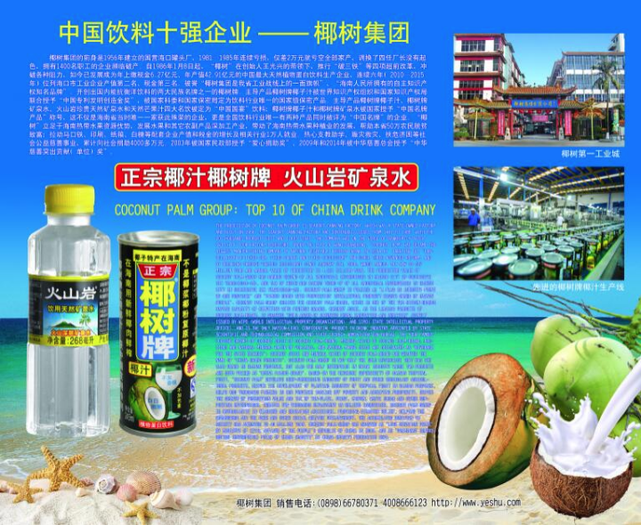 特等金奖产品:海南椰树牌椰汁申报机构:海南椰树集团有限公司