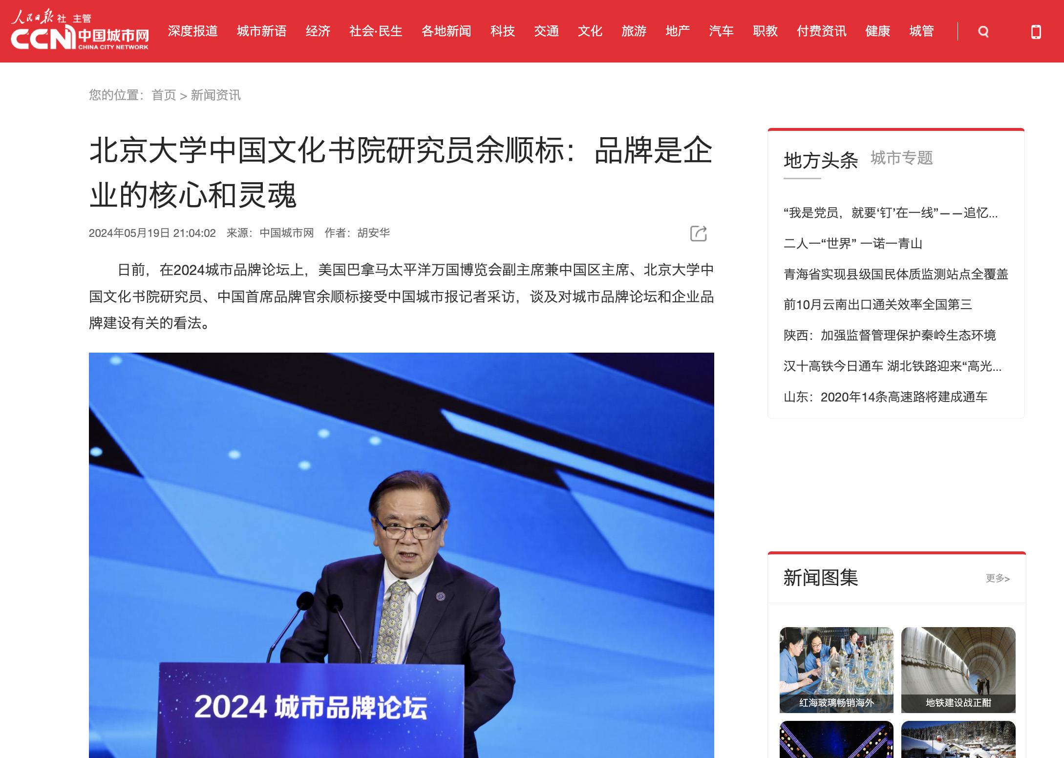 日前,在2024城市品牌论坛上,美国巴拿马太平洋万国博览会副主席兼中国区主席、北京大学中国文化书院研究员、中国首席品牌官余顺标接受中国城市报记者采访,谈及对城市品牌论坛和企业品牌建设有关的看法。